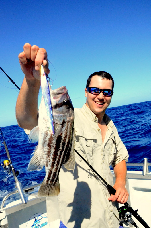 I went out with him the day on the 30th of dec and we had bagged out by 10.30 in the morning.. He was the only one on the boat that was using a jig and it well and truly out fished the baits. He let me have a go at jigging with his little overhead combo that he uses and for my first attempt at jigging i scored a good dhu on my second drop.