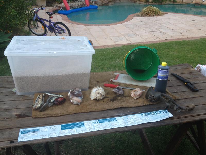 Another thing that my limited local knowledge and experience had suggested, and following a number of posts, was the importance of burley. It is not something I had routinely used fishing the beaches and running rivers but I could see the real need for it in the reef environments off Perth Metro. So, it was off to Nana’s to see if she still had one of those old style mincers (the cast iron ones that you anchor to a bench and they can just about mince anything with a bit of elbow grease). Hooray, I could get one and it is now a much loved item of my ever growing fishing equipment. The burley making however is not a much loved event of the family as I do it out the back and let’s just say it creates the odd impact or two on the local amenity in the way of air quality.