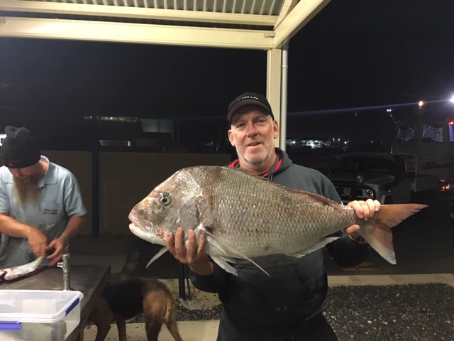 Took mate Sharpie out to the 30-40's. Low swell, light onshore. Very slow. Landed 1 size Dhuie. Headed back in at 5pm, anchored up behind GI in 10 m at a likeley looking spot. Burlied up for 5 mins, then all hell broke loose! Sharpie dropped a horse, then we both hooked up. 2 landed. Cast out again, dropped another then hooked up to a beast. Went 90cm. All in 15 mins of arrival. Got our bag limit and were in at the ramp brfore dark. Slow day come good. Seems to be heaps of good pinkies around ATM.