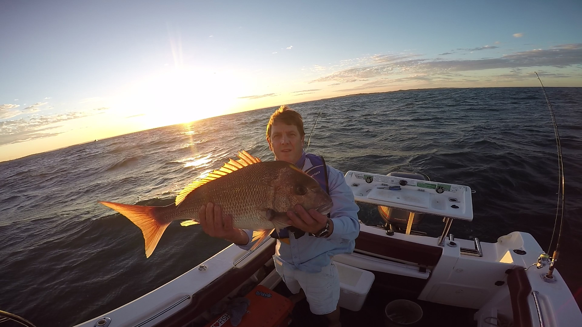 On the water at first light and by the time I passed between Carnac and Garden Islands, the sun was peeping over the eastern horizon. At this stage I was dragging weighted scaleys behind the boat in anticipation for a keen taker. Within minutes of the drift the Shimano Tekota 500 attached to the Shimano T-Curve Jig-200 started screeming summonsing me into action. After a decent tug it was time to land the fish only to have the landing net tangled with the SP rod - where was the deckie when I needed them! After a short battle the first snapper for the day was boated - a pan sized fish of 70cm. From here I moved to FFB only to find the conditions pretty sloppy and uncomfortable causing me to change plan and head off back towards Garden Island.