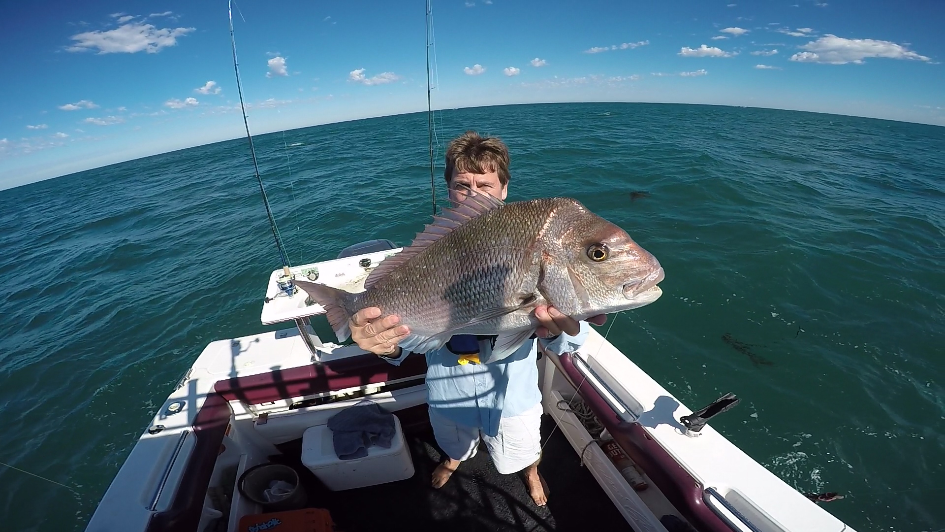 I eventually anchored up off the western shore of Garden Island and added a fair amount of burley to the water. After a short while I landed a small shark and as the hook was being removed the rod with a scalie as bait bent over and started donating line at a rapid rate. I quickly got rid of the shark and after another decent fight landed a snapper of 76cm.