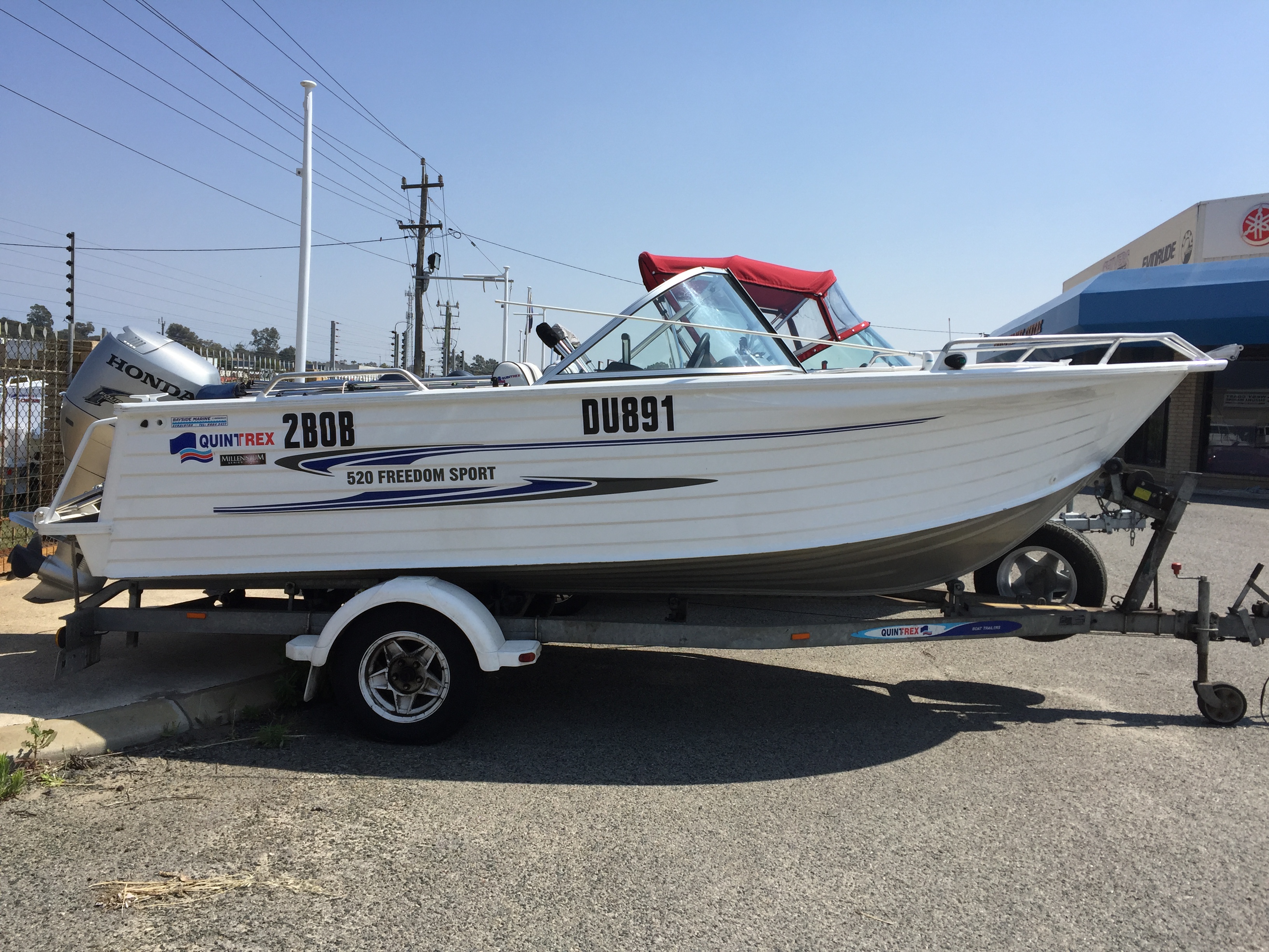 Perfect example of a classic Quintrex 520 Freedom Sport bow rider in mint condition, well looked after perfectly matched with a Honda BF90 four stroke outboard sitting on a very good condition Quintrex braked trailer fully licensed with safety gear ready to hit the water!