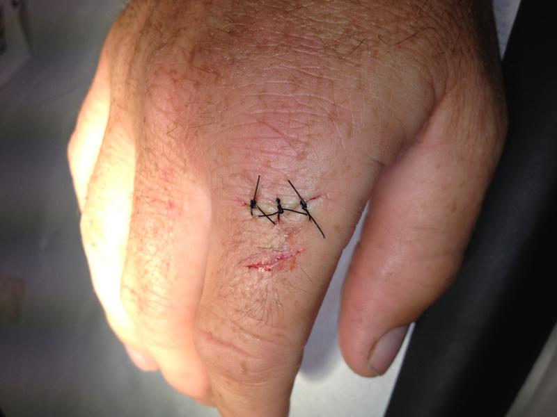 Always have a tube of superglue in a first aid kit for cuts like that!
