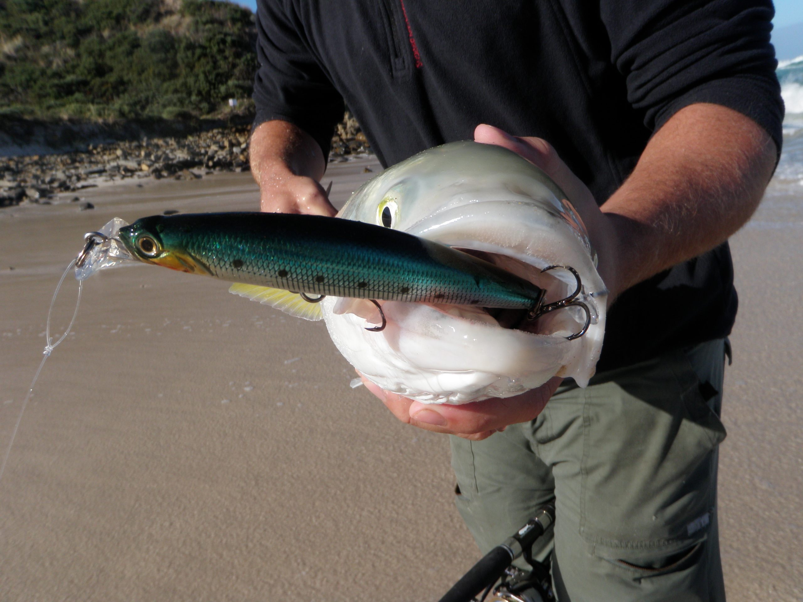 headed south last week and got into a few, mostly injured ones in the gutters besides 1 school of maybe 80 fish. Got up on the cliffs for a scout and spotted larger schools out of casting range.