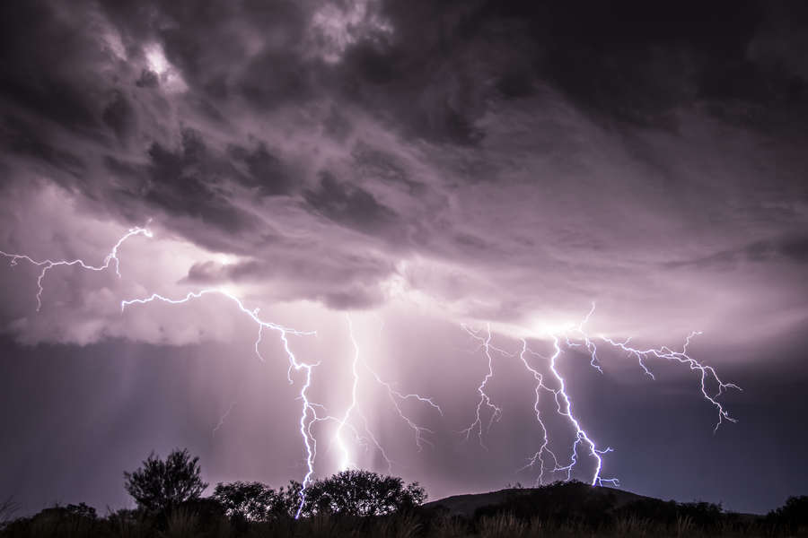 Which is unusually short for my lightning photography. I normally use between 20 and 30 second exposures for lightning stills, deoending on how fast I think the cloud is moving. You are really only trying to catch an actual flash, so the whole picture is likely to be completely dark if no lightning happens in that time. or if multiple flashes happen during that 20 or 30 seconds, you get all of them on one exposure. Normally using ISO200 and f5.6. Because I was trying to do a timelapse, I needed a lot of frames, so I went down to 3 second exposure. This meant that ambient light ( of the full moon) had no chance to light up the cloud. I shot one just before that of a storm in a different direction, using 10 second exposure( the timelapse linked above)--this actually turned out better as there was more detail in the cloud from ambient, and you don't need to push the exposure so hard in post-processing. Pushing exposure hard on a very dark shot just gives bad noise. But the trade-off was less exposures over a given time, so it's a juggling act.