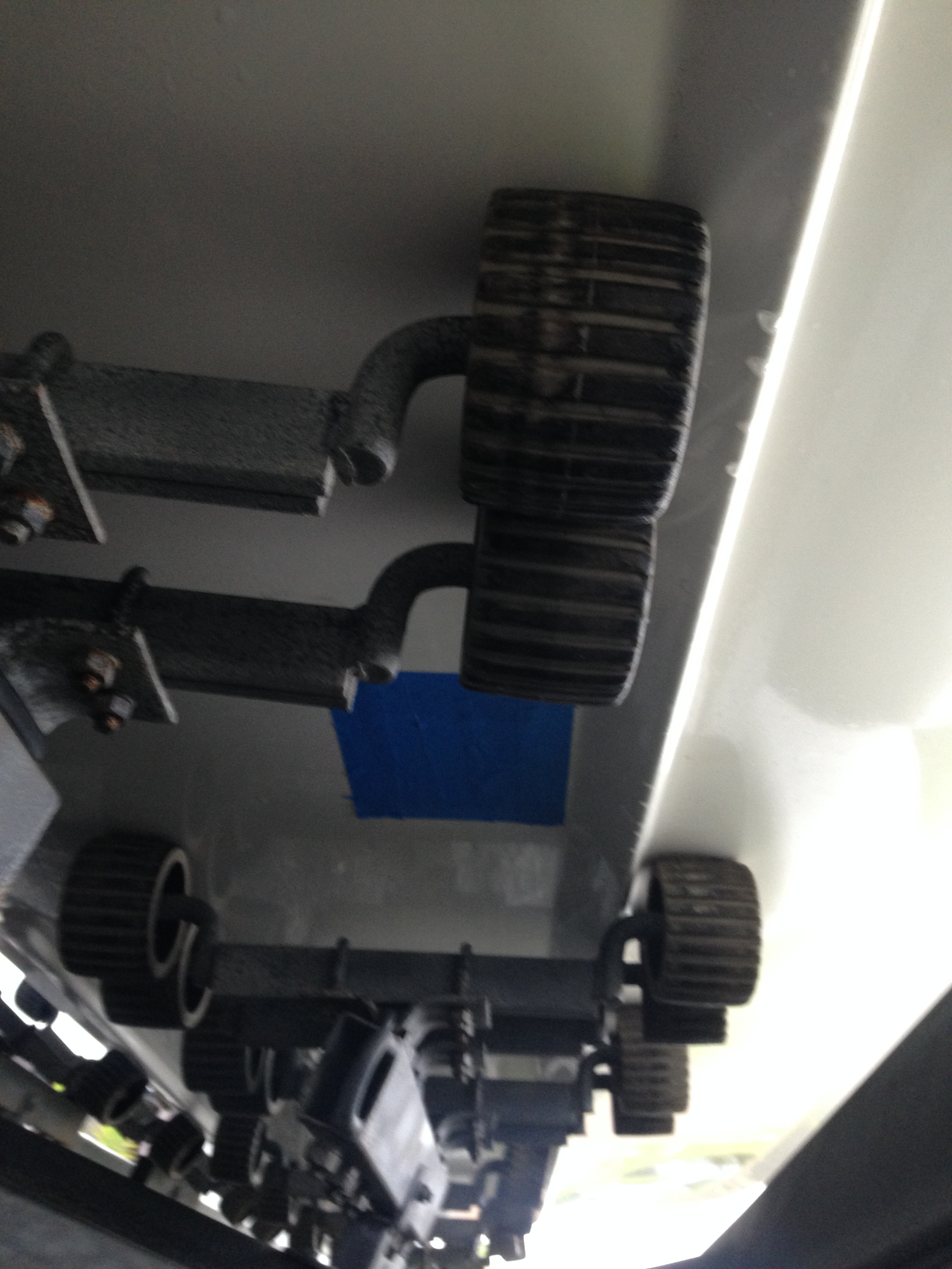 Blue tape shows old location 700cm in from starboard side 400cm from rear