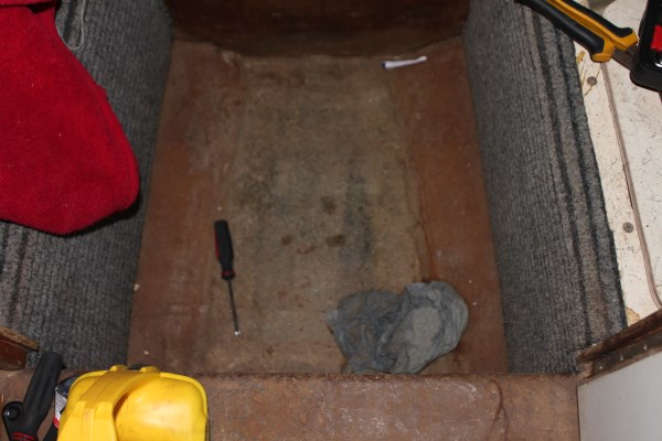 where toilet was, the hole goes into the hull where i have no way to look inside