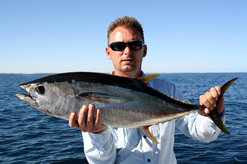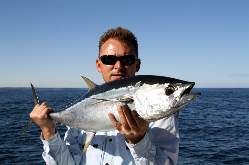 With water still bubbling all around us we tried to get the lures back in the water but before I could get the second one out the first got hit again! After another good fight we had a Longtail Tuna in the boat. This went on for a while with both of us boating a number of Longtails in a hot session within sight of Jurien Bay!