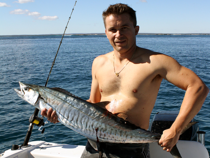 After seeing Wednesday's weather forecast decided the only sensible thing to do was take the day off work and do a spot of fishing. Packed up the boat, picked up the deckie and we took off up to Jurien hoping for a Mackie or two. On the water at 9 and we were greeted by magic conditions. Went behind the islands and started trawling in the 20's just behind the reef.