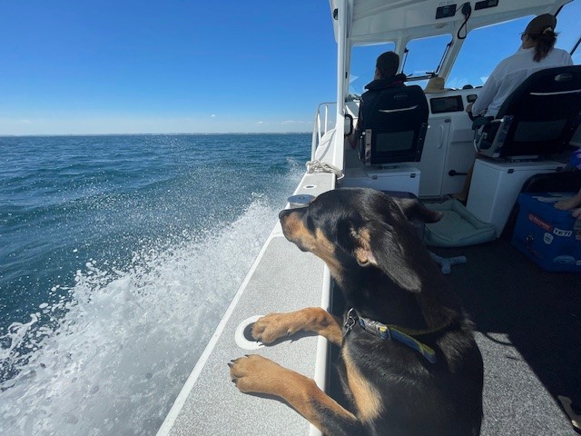 Finally, some would know that we had to say goodbye to our dog Charlie earlier this year. It absoloutely broke me for months, but we now have Navi with us, who at this point, is a 6.5 month old Kelpie who was surrended. She is a good kid on the boat, happily falls asleep, has fallen off after chasing a seagull and enjoys some Dhufish scraps...