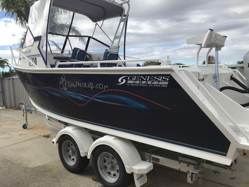 I'm sure if I asked the long list of fishwrecked members I have taken out on this thing over the years to provide testimony, they would sing its praises as a great hull, well suited to offshore fishing. Those that know me well, will also attest to the fact that I keep it ship shape and well serviced. It includes a brand new trailer, brand new clears, new epirb and flare sets, new upholstery at the helm, brand new dual batteries and a sounder/GPS full of hundreds of my metro fishing spots to get you started.