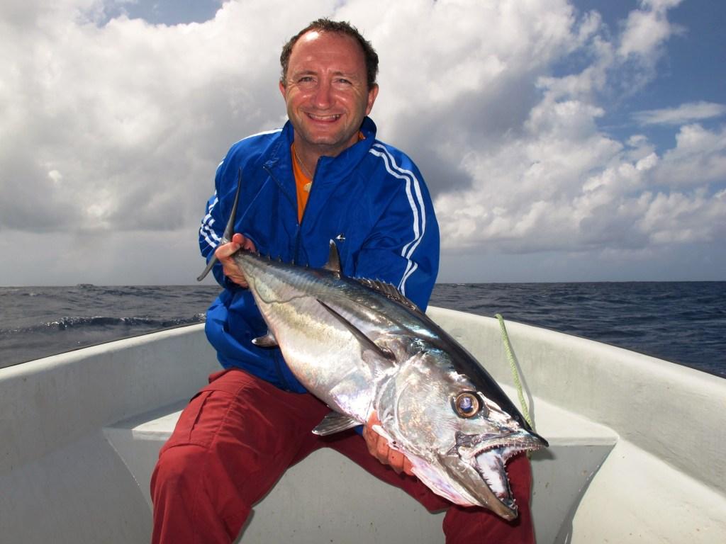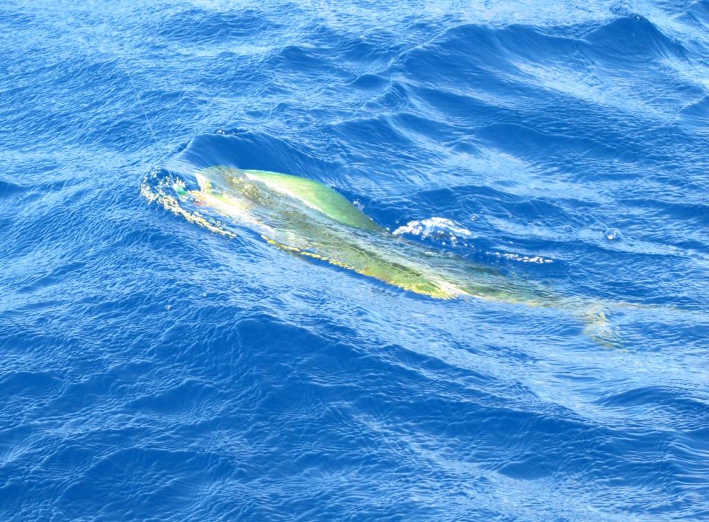 Went out yesterday in the 25 knot 3 metre conditions and hunted some Dolphinfish which are running hard at the moment. We got a couple early and then bled with nothing for about three hours. We decided to head home about 1200 and trolled the reef on the way. I picked up a very welcome doggie (probably about 8kgs). Then at the end of securing that in the esky we saw a massive dolly school, left the reef and got into them. It was Mahi Madness with double hook-ups and only me to get them in as it was too rough for my mate to leave the wheel. There wasn't even time to reset lures as whatever was left in the water ended up connected to the next fish. An awesome 45 minutes to finish the days fishing. We got another four before heading home, leaving them biting.