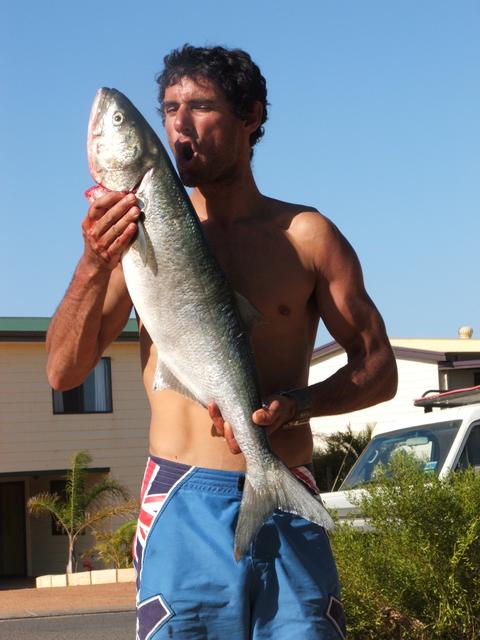 yeah be good if perth saw them that big, im sure out on the bombies youd get them pretty big, they actually get bigger than that, was a big female full of eggs, if id known i would have thrown her back, but she did taste pretty damn fine tho! round may june you get some woppers in there and you cant stop them even when you get them into the deeper water. Up north from here they get up to 9 odd kg and u stand no chance with them on the reef up there.